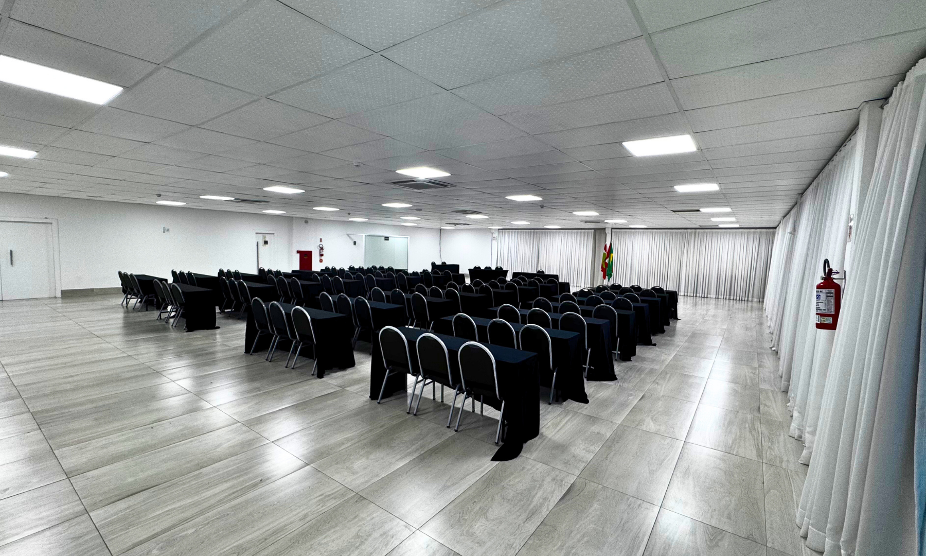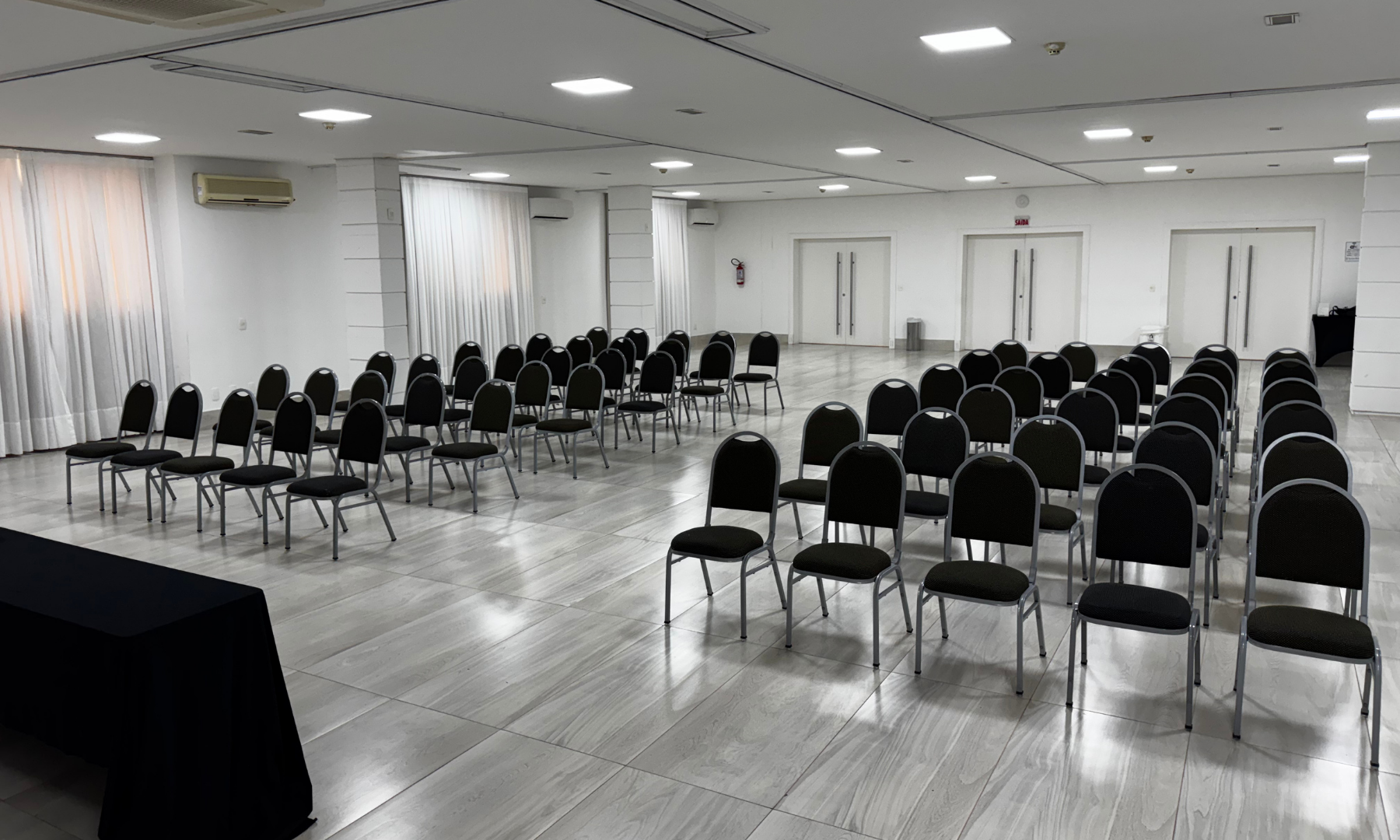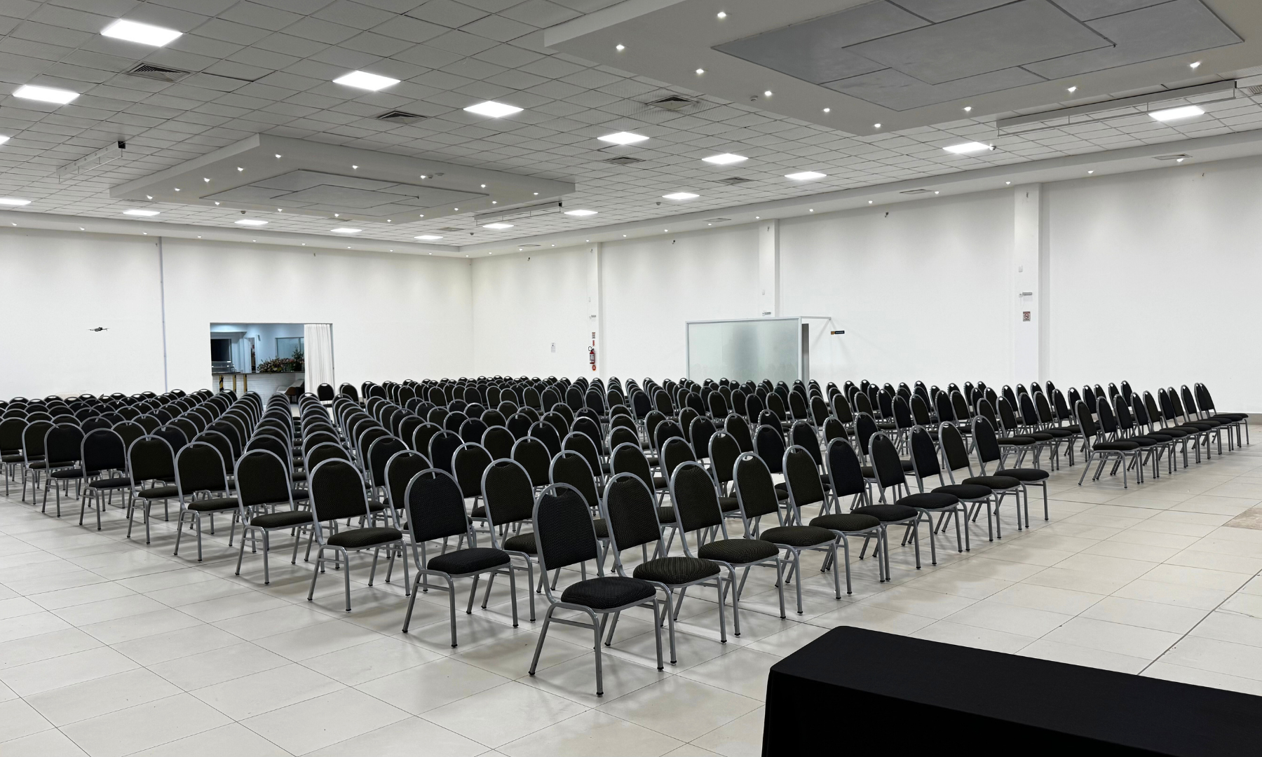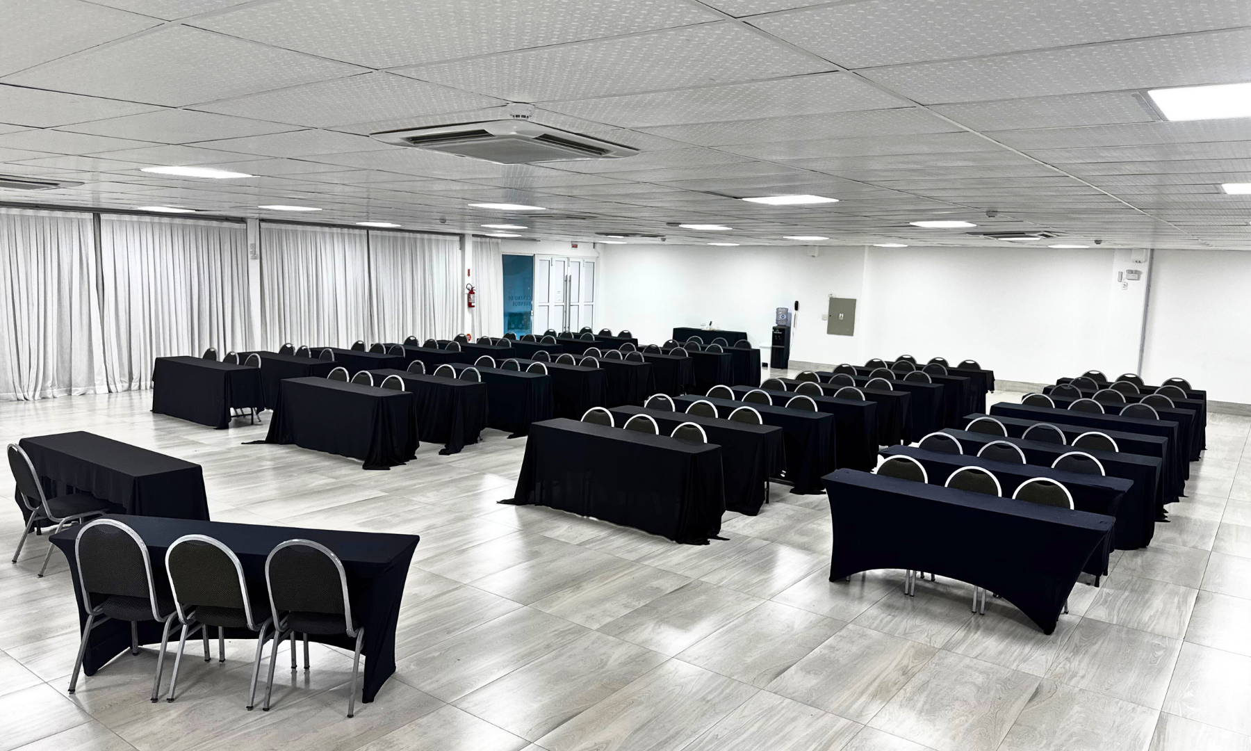 Nosso mobiliário confortável e adaptável permite diferentes configurações de layout, atendendo às necessidades específicas de cada tipo de evento — desde auditório e sala de aula até coquetéis e banquetes.
