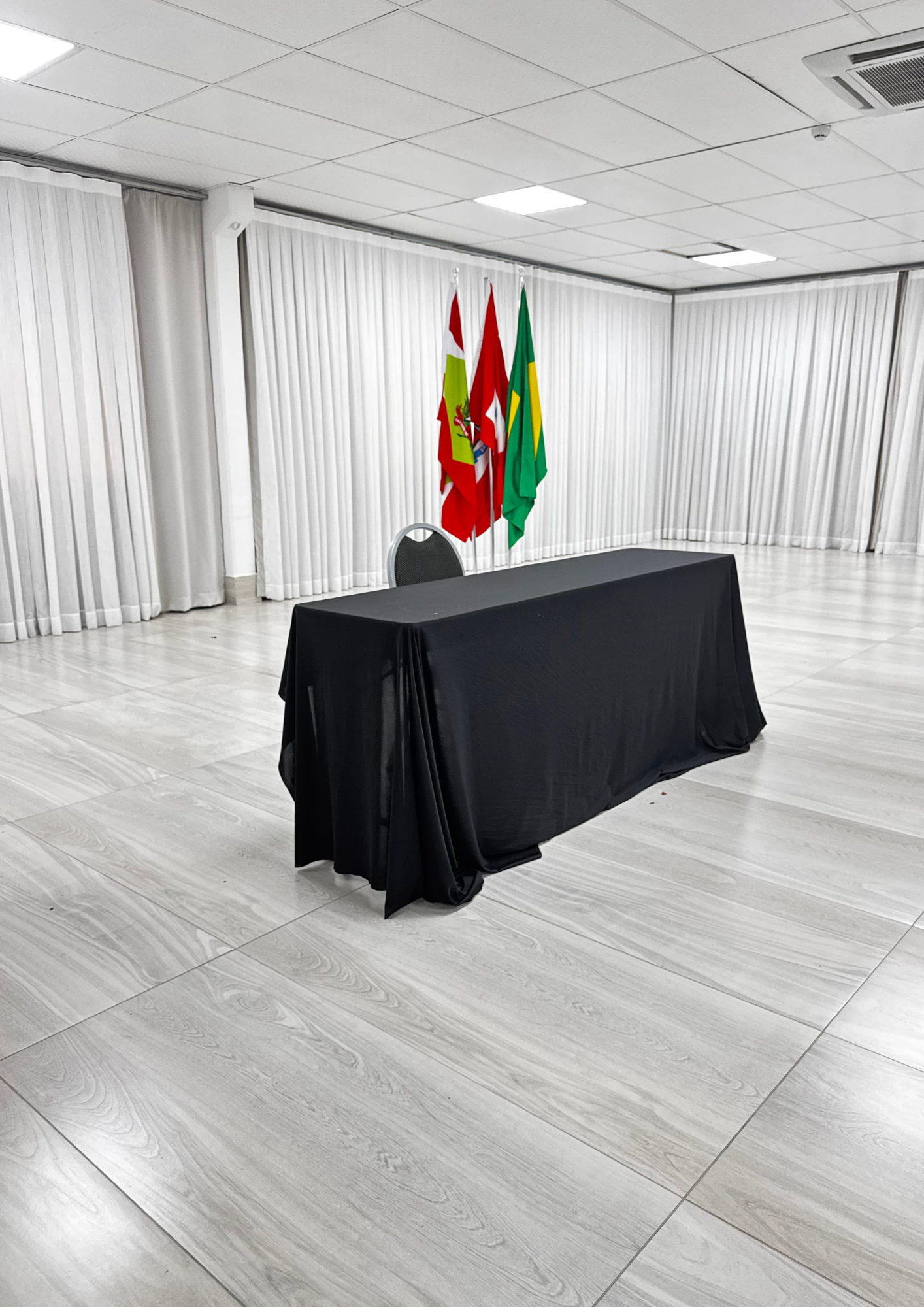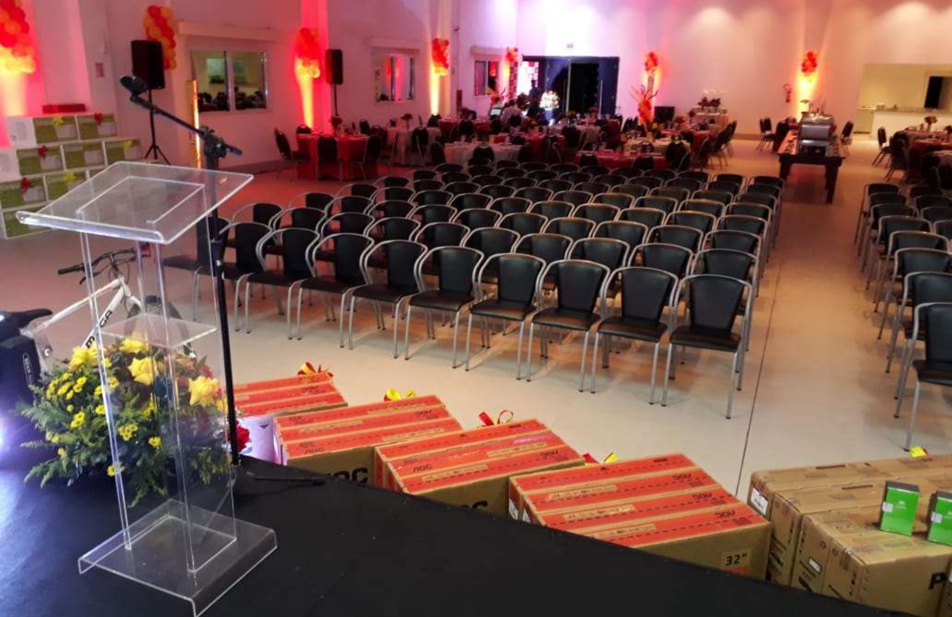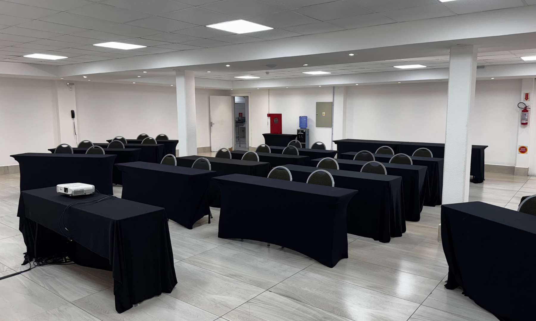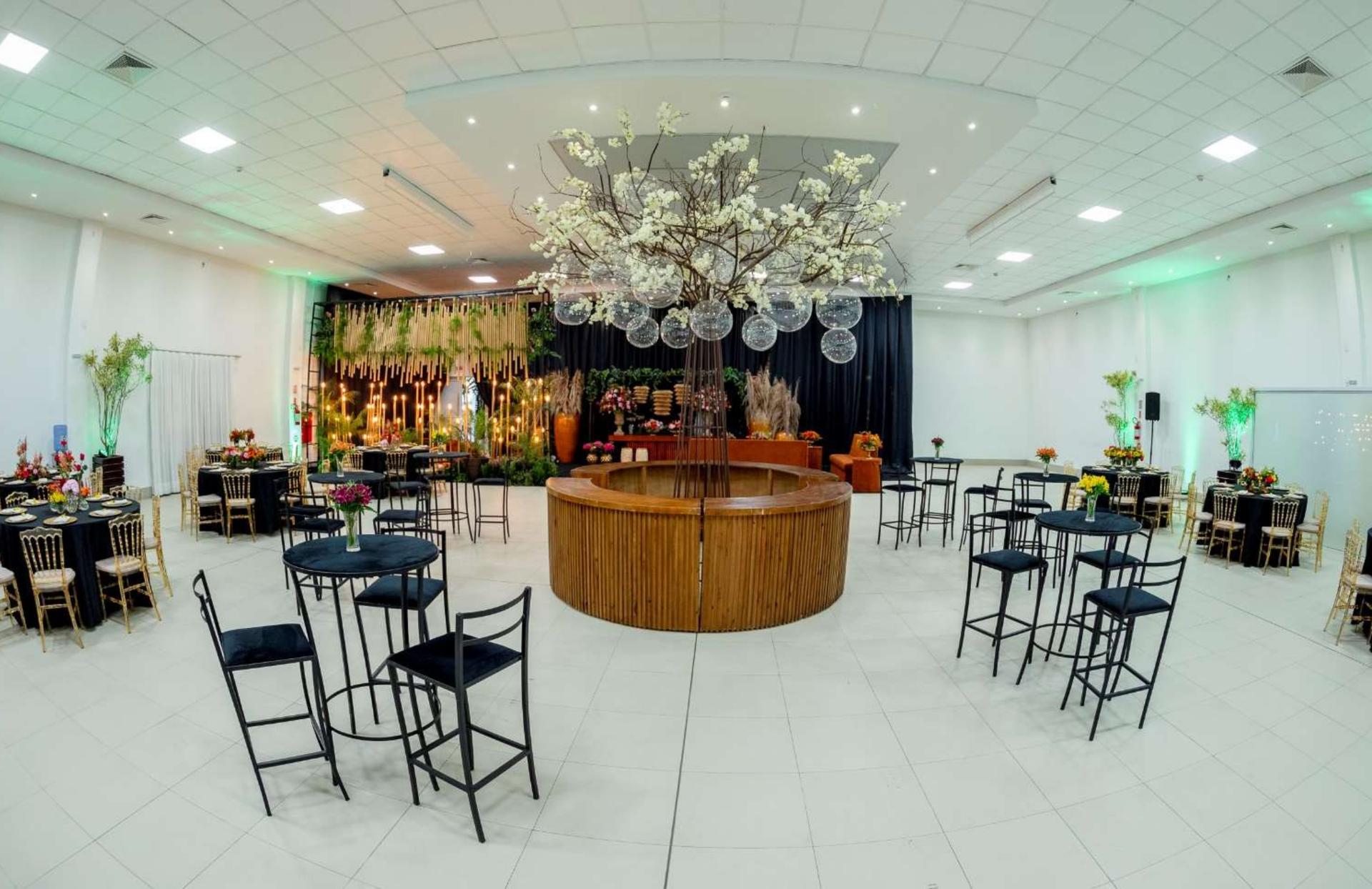 Nosso mobiliário confortável e adaptável permite diferentes configurações de layout, atendendo às necessidades específicas de cada tipo de evento — desde auditório e sala de aula até coquetéis e banquetes.